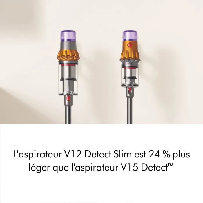 DYSON V12 Detect Slim Absolute – Aspirateur Balai sans fil – Puissance 150 AW – Contrôle de puissance – Brosse avec lumière intégrée